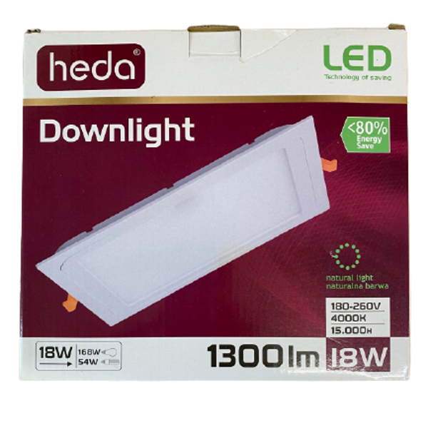 Kvadratni ugradbeni HEDA Slim LED Panel snage 18W i toka svjetlosti 1300lm temperature boje 4000K.