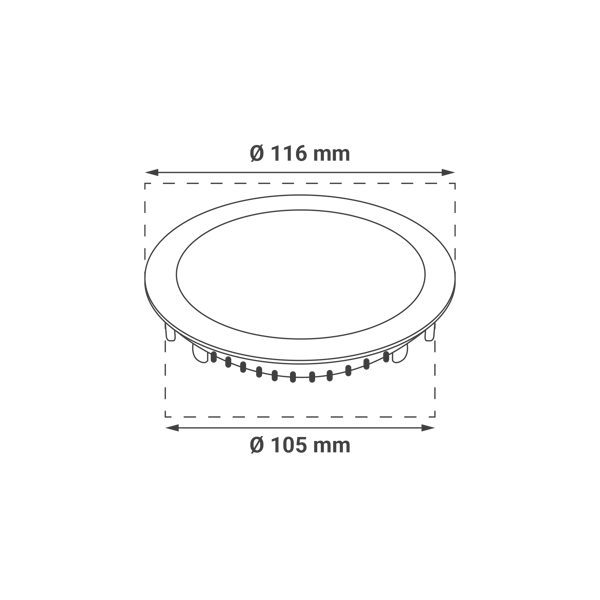 - Dimenzija instalacijskog otvora: Ø 105 mm