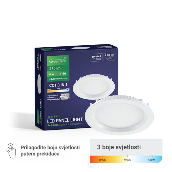 - Temperatura svjetlosti: 3CCT (3000K, 4000K, 6000K)
