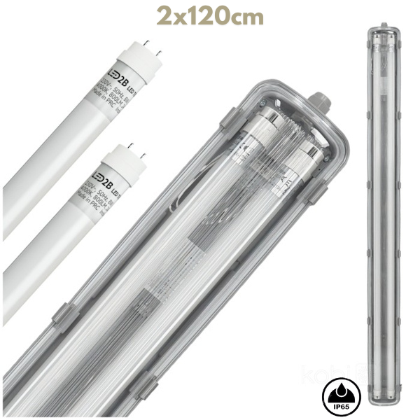 Vodotjesna LED armatura sa 2x120cm cijevima temperature boje 4000K.
