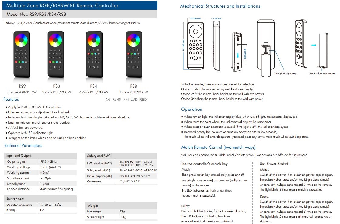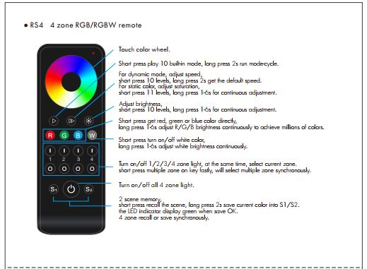 - Funkcija: Dimming, on/off, Promjena boje (RGBW)