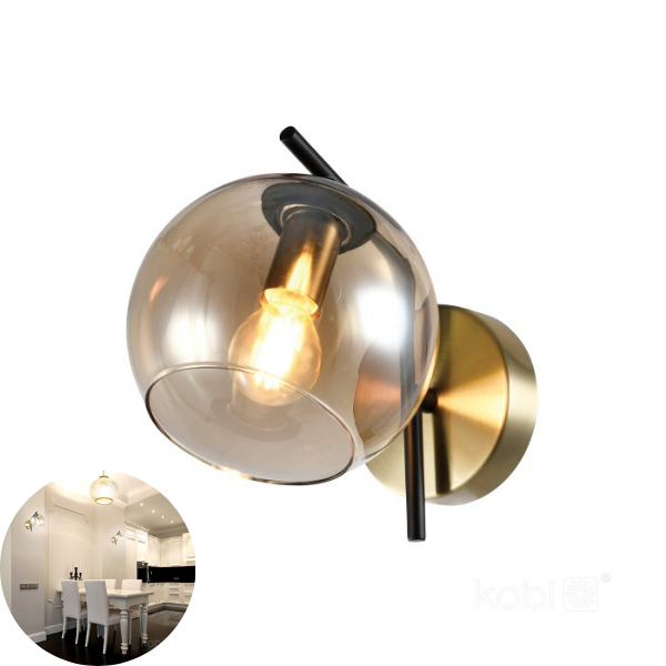Zidna staklena armatura amber+gold za E14 grlo.